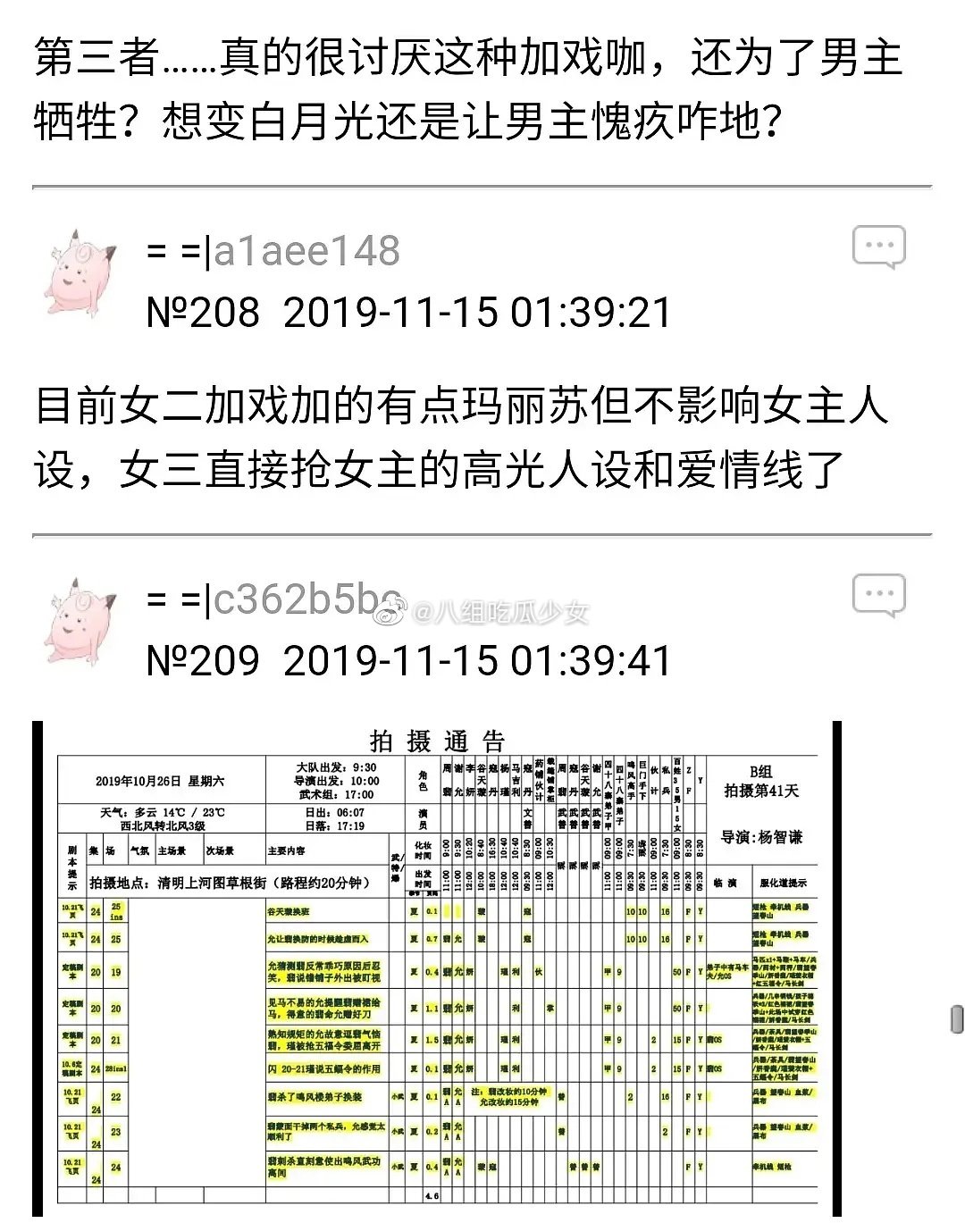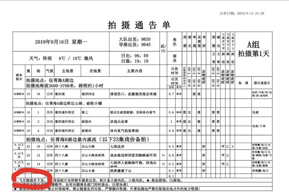 早在9月份网上就曝出了《有翡》通告单,备注栏明确标注了:“飞页随通告下发”,意思是没有准备好剧本,配角飞页拍摄。飞页的意思就是在拍摄时候没有具体的剧本,而是在拍摄的过程中,一边拍摄一边写剧本,这样就很可能存在配角加戏的情况。剧本没有具体的故事情节,而是在拍摄的过程中补充剧本,有网友透露《有翡》剧组经常半夜才发第二天要拍的飞页,导致演员们休息时间不够,缺少准备时间。