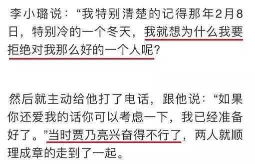 她曾说“为什么我要拒绝对我那么好的一个人呢”,李小璐不想失去对她好的人,享受被追、被宠、被捧在手心里像对待小公主那样呵护,所以她选择了贾乃亮。