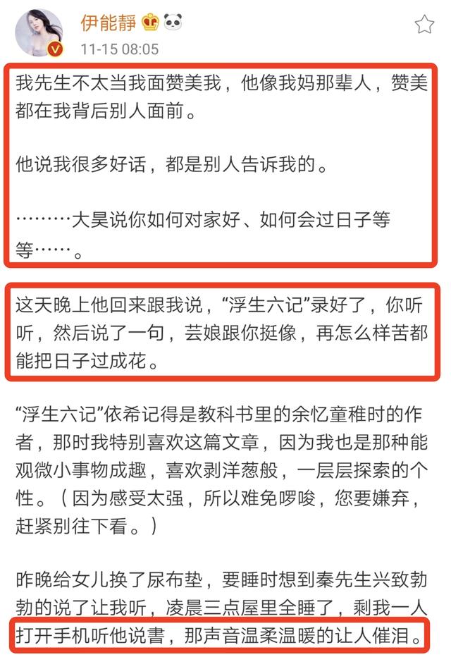 原标题:伊能静发文称秦昊珍惜自己,公公婆婆也爱她,秀恩爱却求生欲