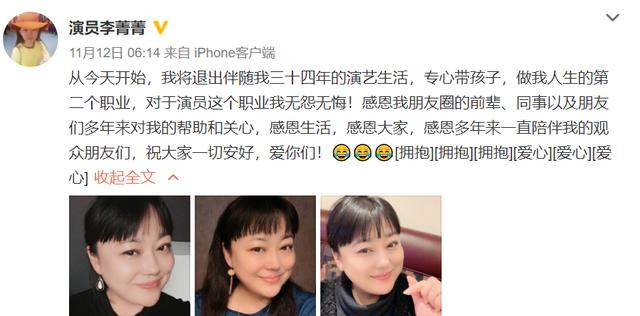 前几天,演员李菁菁在微博上宣布自己退出娱乐圈,结束自己已经坚持了34年的演艺生涯,这件事情迅速登上热搜,引起了网友们的广泛关注。