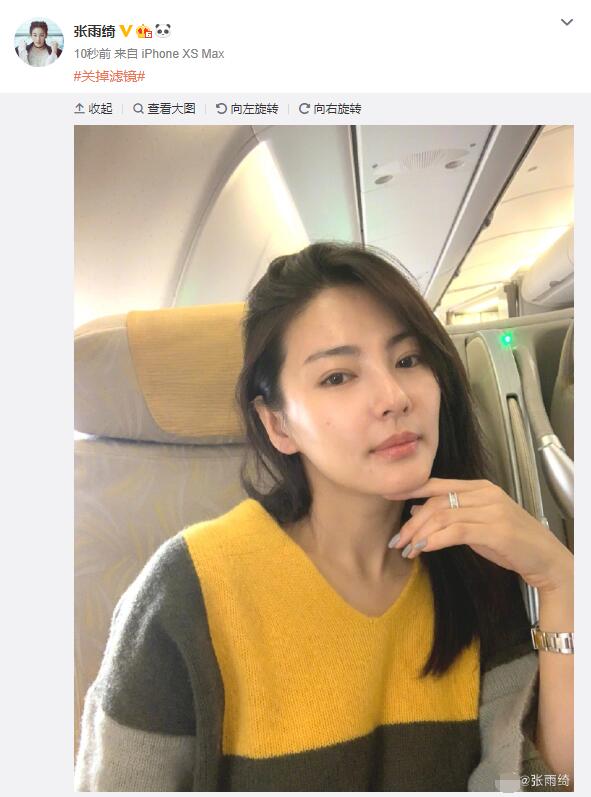 【缩鼻翼疑似整容?张雨绮晒自拍回应:关掉滤镜 】