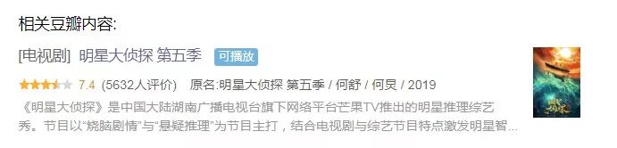 这档综艺在豆瓣上的评分一直被当作传奇,前四季获得了9分以上的成绩,然而《明星大侦探》第五季播出后,这部神作终于跌落神坛,在豆瓣上仅打出了7.4分的成绩,虽然相比其他综艺评分依然领先,但依然令很多观众粉丝觉得很失望。