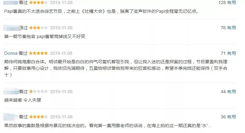 就像《极限挑战》第五季因为换人而口碑暴跌一样,倒不是说这一期的三位新玩家,张若昀、井柏然和papi酱的表现不好,只是观众更期待看到原来的配方,而且他们很多时候明显接不上梗,还不太适合节目的节奏。