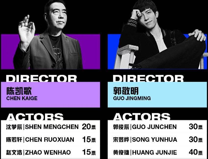 专业评审团中,陈凯歌为何会落后6票。相对于郭敬明组朱芸桦,郭俊辰和黄俊捷三人车不多的演技;陈凯歌组的三人的表演就反差太大了,尽管赵文浩的得票不高,但其实他的台词是说的最清楚,演得最顺畅的。陈若轩相对就要差了一些,在台词方面出演了语言含糊不清的现象。沈梦辰的票数最高,但其表演是三人中最差的,她一张口,就能听出是湖南版的普通话,很容易让人出戏。