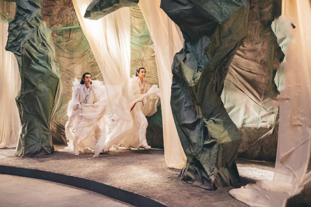在镜头语言上,郭导演努力学习陈凯歌导演在电影《妖猫传》当中的“一笔一划”。尤其是两位白鹤少年飞奔出场的戏码,其实就是陈凯歌原作地不差一丝一毫地还原罢了。这也再次证明,郭敬明太善于模仿了。