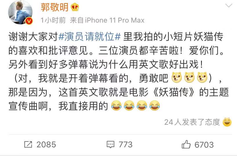 节目都播出很多期,说了很多的郭敬明终于笑了,因为被表扬了。