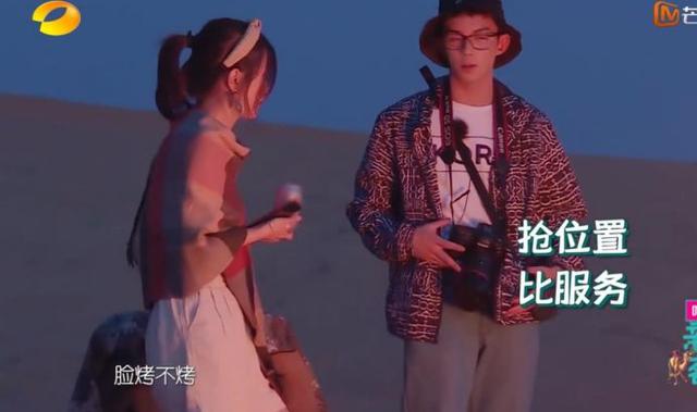从指定了沙漠路线开始,吴磊与张翰就切割不开了,张翰拍照吴磊也要跟着拍,张翰问客人要不要去篝火旁边,吴磊立马也问自己的客人去不去。