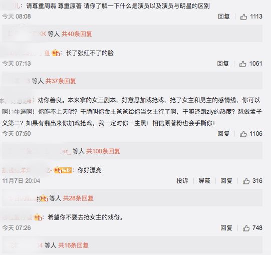 众多网友化身福尔摩斯,认为此番赵丽颖发图意在“内涵”《有翡》剧组魔改、加戏。并且有网友晒出“拍摄通告”,剑指女二号、女三号魔改、加戏。消息一出,周洁琼、张慧雯两位演员的评论区瞬间“沦陷”,大批剧粉以及赵丽颖的粉丝在评论区留言,希望不要再为自己加戏: