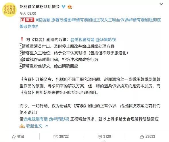 作为赵丽颖粉丝的官方代表,“赵丽颖全球粉丝后援会”在今晨发声,向剧组和制片方提出四项合理诉求。