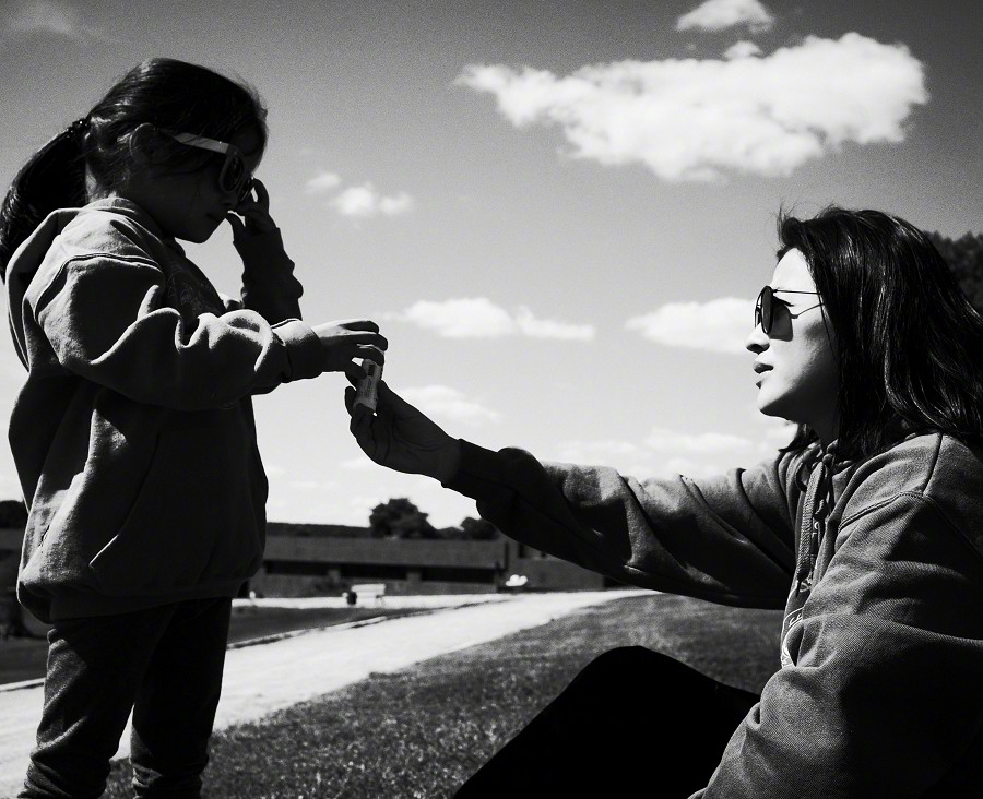 第三个亮点是照片的处理方法,用最简单的黑白滤镜,去拍最温暖的家庭互动,这种淳朴,这份挚爱,这种拍摄手法,真的超高级。而这组照片中我最喜欢梅婷自己躺在地上的那一张,那种自在告诉我们,她现在很幸福。