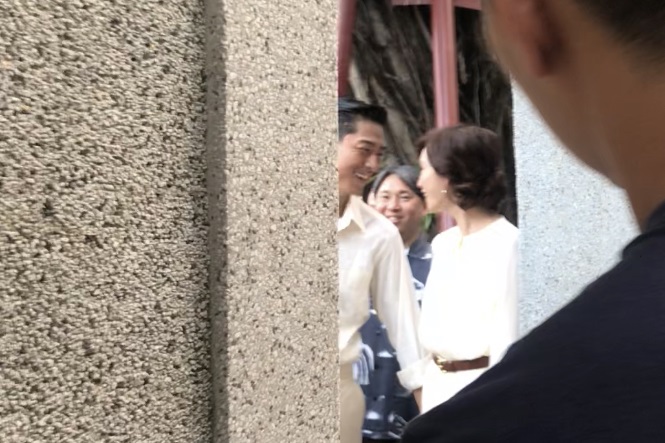 在这之后,两人结束彩排来到彩排现场的门口,这时门口已经有大批的媒体与群众在围观,林志玲与黑泽良平也并未因婚礼彩排剧透而显出不悦的表情,还是十分亲切的与现场围观群众打招呼。