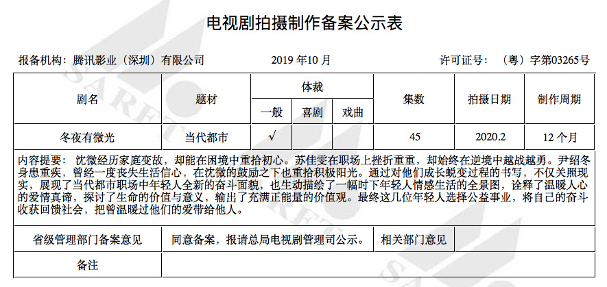 知名言情作家亚未的小说《冬夜有微光》也即将影视化,由腾讯影业拍摄制作。