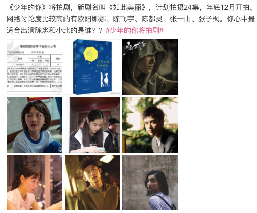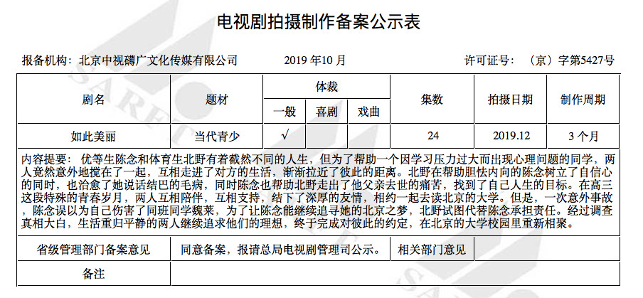 目前,《少年的你》仍在热映,同样是根据《少年的你,如此美丽》改编的电视剧《如此美丽》备案公示就已经出来了,网友们不禁感叹:好速度!