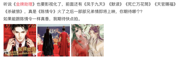 而作为一部耽改剧,粉丝却是喜忧参半,说不期待是假的,担心为了顺利播出会改到面目全非也是真的。总之,能顺顺利利拍出来我们肯定是会看的!