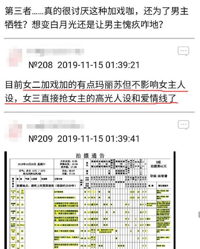 根据通告单的剧情提示,也能够发现一些原本女三号不该出现的场合,周洁琼都出现了,而且还抢女主的高光人设,原著她和男主没有感情线,但剧组也给她和王一博安排了感情的戏份,女二张慧雯虽然也加戏了,但没有影响到女主的人设。
