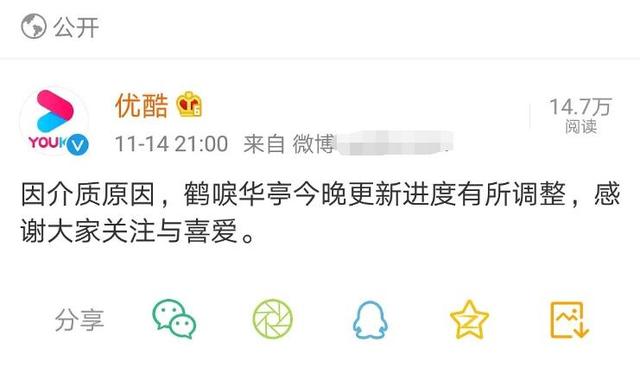 之前罗晋主演的《封神演义》中途停播是因为改编幅度过大,而《鹤唳华亭》更新调整网传是因为该剧涉及到权谋的东西,审查会比较严,所以也有观众担心同是权谋题材的《庆余年》还能不能播出,《庆余年》之前网传11月也要播出,但至今还没有定档的消息,不知道是不是也会像《鹤唳华亭》突然上线呢-。