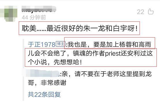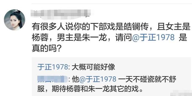 节目播出后引起了观众热议,稍后于正也发了条微博,无语的晒出了与节目导演的聊天纪录,气愤的追问对方,已经说好朱一龙那段不要播出来,他只是在开玩笑,不想让人觉得他在消费朱一龙,而且还说他和朱一龙的关系挺好的,自己孤傲了一辈子,不想去消费其他明星。