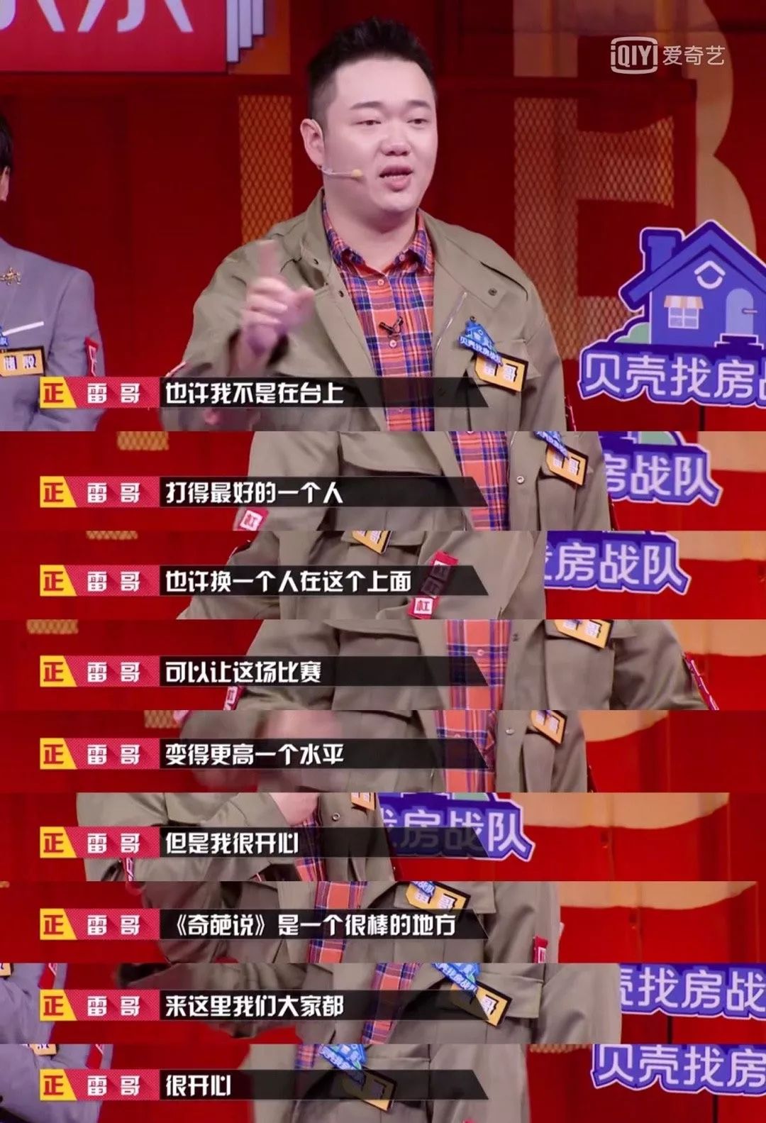 雷哥在自己的淘汰感言中提到了5次“开心”这个词,回答这个问题的时候他也提到了一次。“我喜欢给别人带来快乐,我可以是一个主持人,也可以是一个喜剧演员,还可以是一个辩手,只要能够用我的方式把快乐带给别人,别人开心,我也会开心。”
