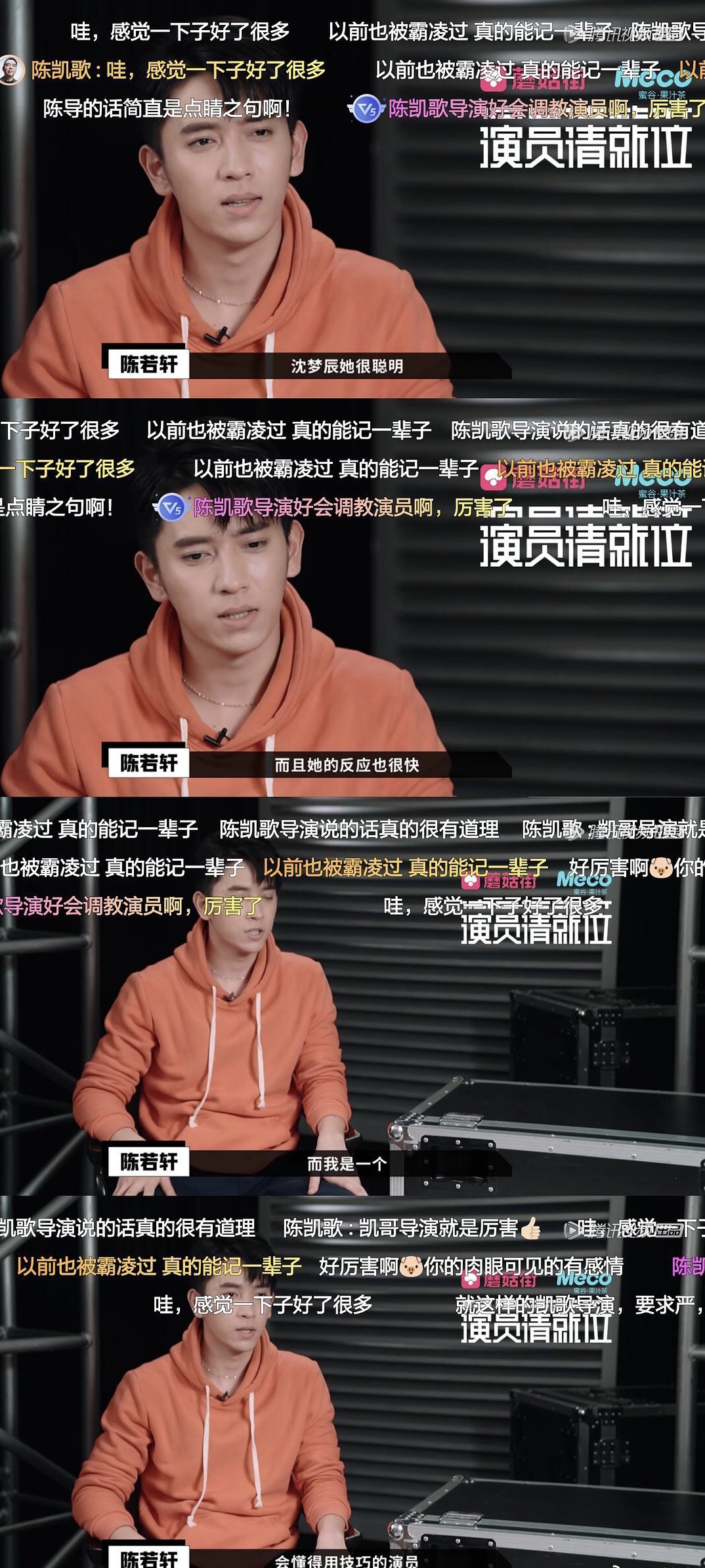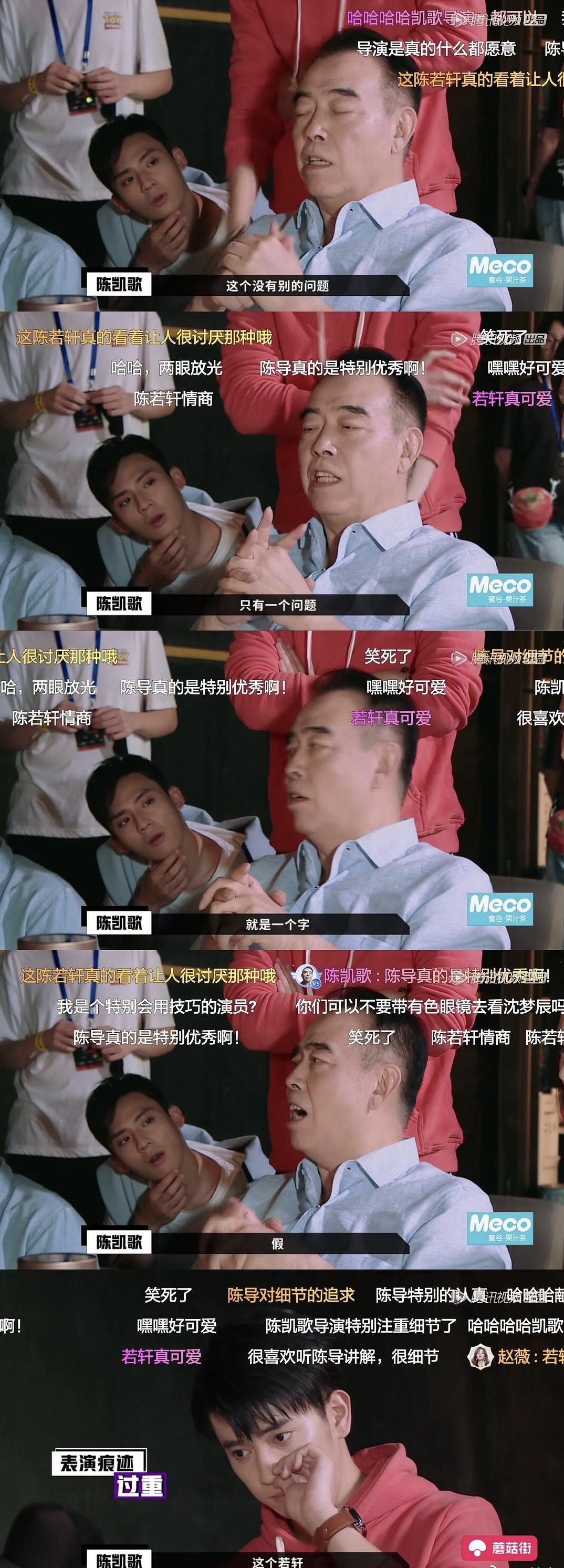 之后在节目中,陈若轩一直给人一种积极主动,并且戏很足的状态。比如,最近一期节目中,陈若轩表示沈梦辰是一个很聪明的演员,反应也很快,但自己是一个很懂得用技巧的演员。不得不说,陈若轩对自己的认知还真的是非常清楚啊,也是很敢说了。但是,在之后拍摄的时候,陈凯歌并不觉得这种技巧性的东西太多是好事。