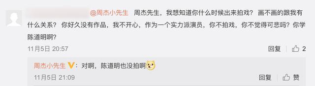 近日,某档演员综艺引发了一波《还珠》的回忆杀,周杰的粉丝也去他的微博下面问询,看看他打算何时复出。而周杰不仅直言没戏拍,同时还拿陈道明逗趣举例,可见演员行业竞争之激烈,远非寻常人所想象。