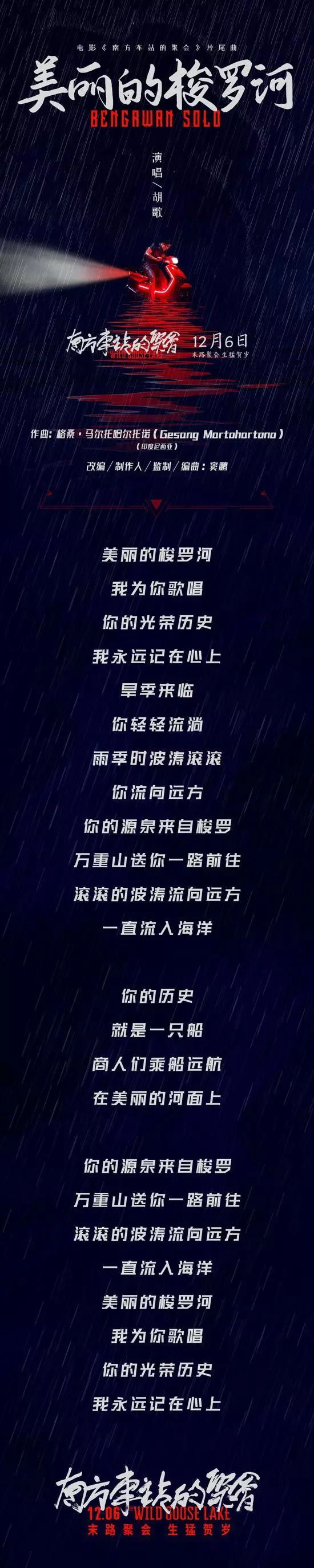电影《南方车站的聚会》将于12月6日全国上映。胡歌演唱的片尾曲《美丽的梭罗河》已正式上线。