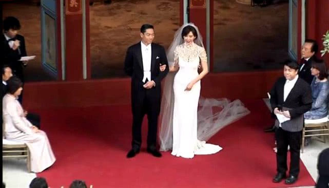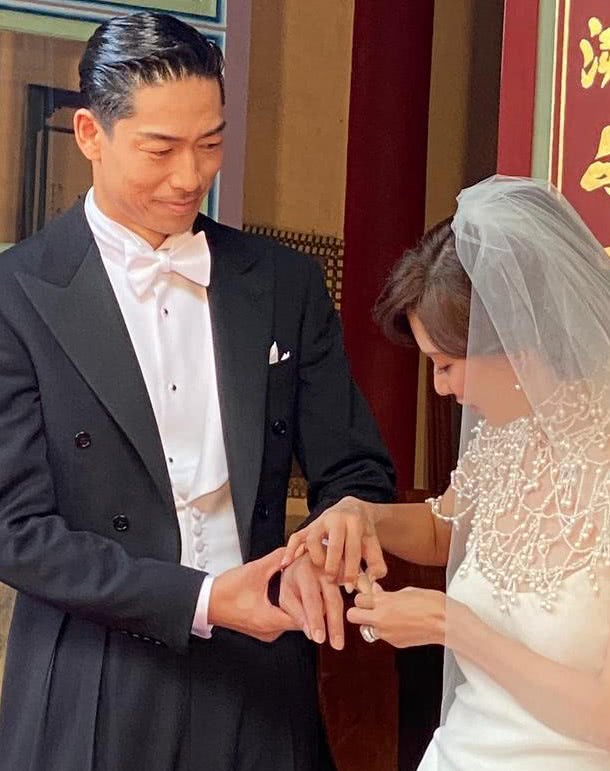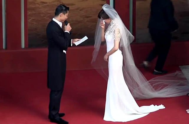 林志玲哭得梨花带雨,AKIRA为太太掀开头纱的时候,眼里满满都是宠溺。