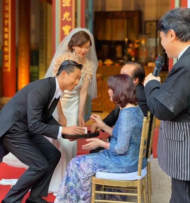 仪式由蔡康永主持,林志玲夫妇站在中间,双方父母坐在两边。