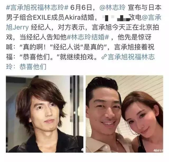 之前有媒体爆料,当言承旭听到林志玲结婚的消息时,先是难以置信,但随之还是大方送出了祝福:“恭喜他们。”
