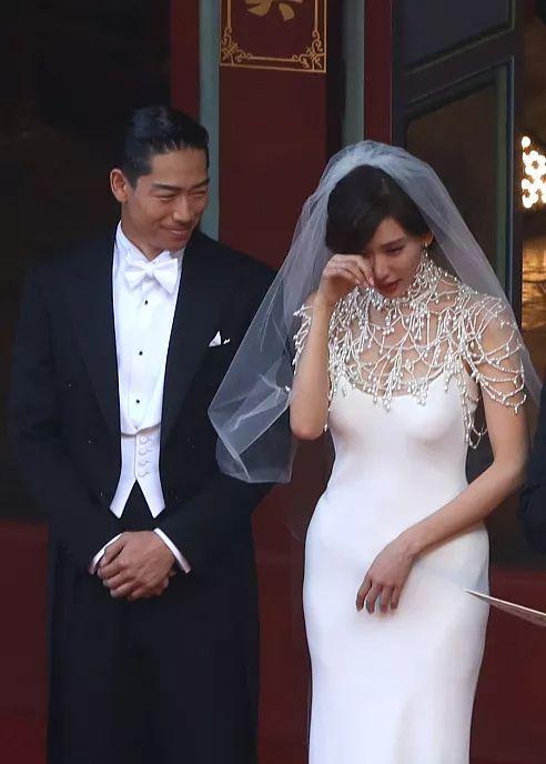 婚礼现场,林志玲身穿一件简约素雅的白色鱼尾婚纱裙,尽显修长曼妙好身材。黑泽良平为林志玲戴上结婚戒指,这枚花朵造型的钻戒估价约13万人民币。交换戒指后,二人甜蜜亲吻。