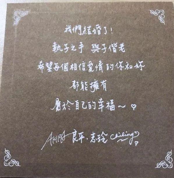 誓言朴实无华,却字字戳心。就像这场简单却温馨的婚礼,从选址到各处细节,都显得那么接地气,比如婚礼请柬上,是志玲姐姐一贯亲切温柔的口吻: