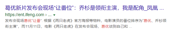 最近葛优新片《两只老虎》宣传物料上,葛优的名字也排在前面。葛优还特别澄清乔杉才是主演,他是配角,海报上名字被写在前面非自己本意。