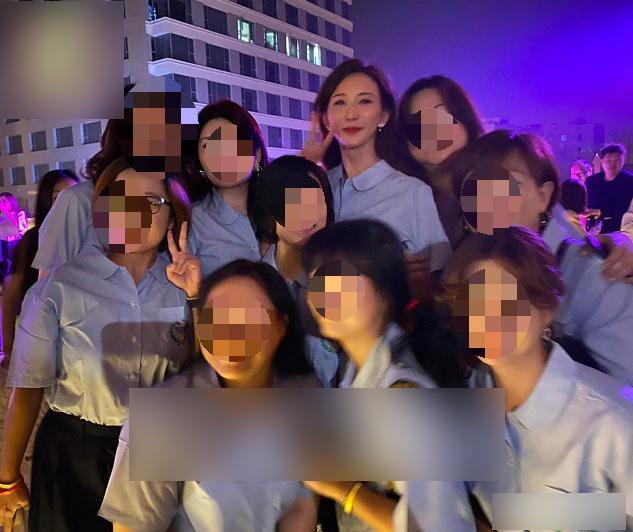 林志玲穿学生装,看起来还是很清纯,仿佛回到了学生时代,林志玲在人群中,依然是最亮的星!