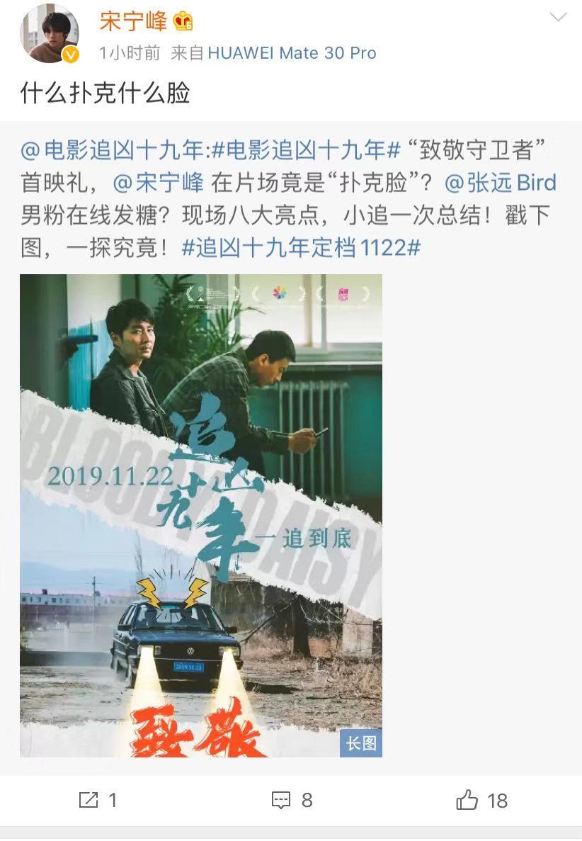 宋宁峰懒理前妻和王传君的恋情,在宣传自己出演的新戏《追凶十九年》,该片即将公映。这部电影豆瓣已经出分,可能是在平遥国际电影节放映,打分不高,看来票房也是堪忧。