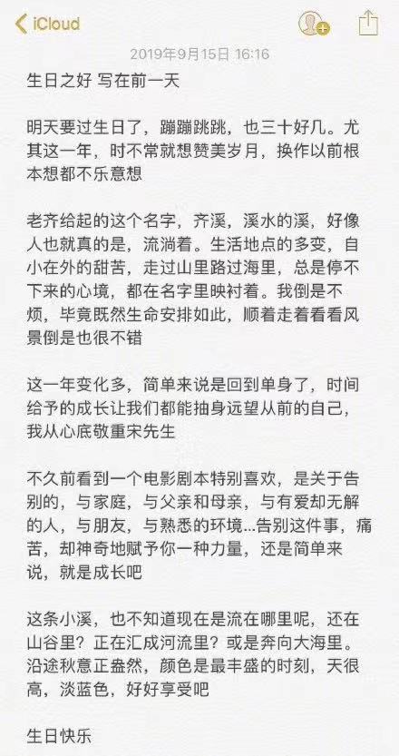 齐溪和窦唯前妻高原的表弟宋宁峰宣布已经离婚,发生在齐溪9月16日生日前一天。