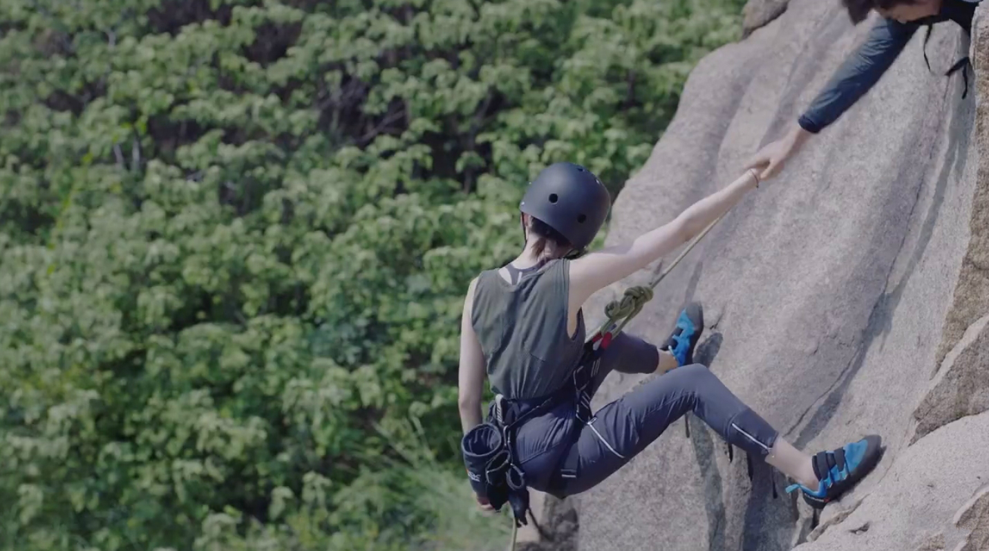 而在导演拍摄方面,也实现了讲女主角颜值最大化处理的目的。男女主角第一次偶遇的剧情,女主角的攀岩装备和运动镜头拍摄,都呈现了青春靓丽的女主特征。导演善于在这些运动戏码当中捕捉张天爱姣好的一面。而在女主来到波尔多之后,白色长裤的服装设计,也是为展现其大长腿服务的。
