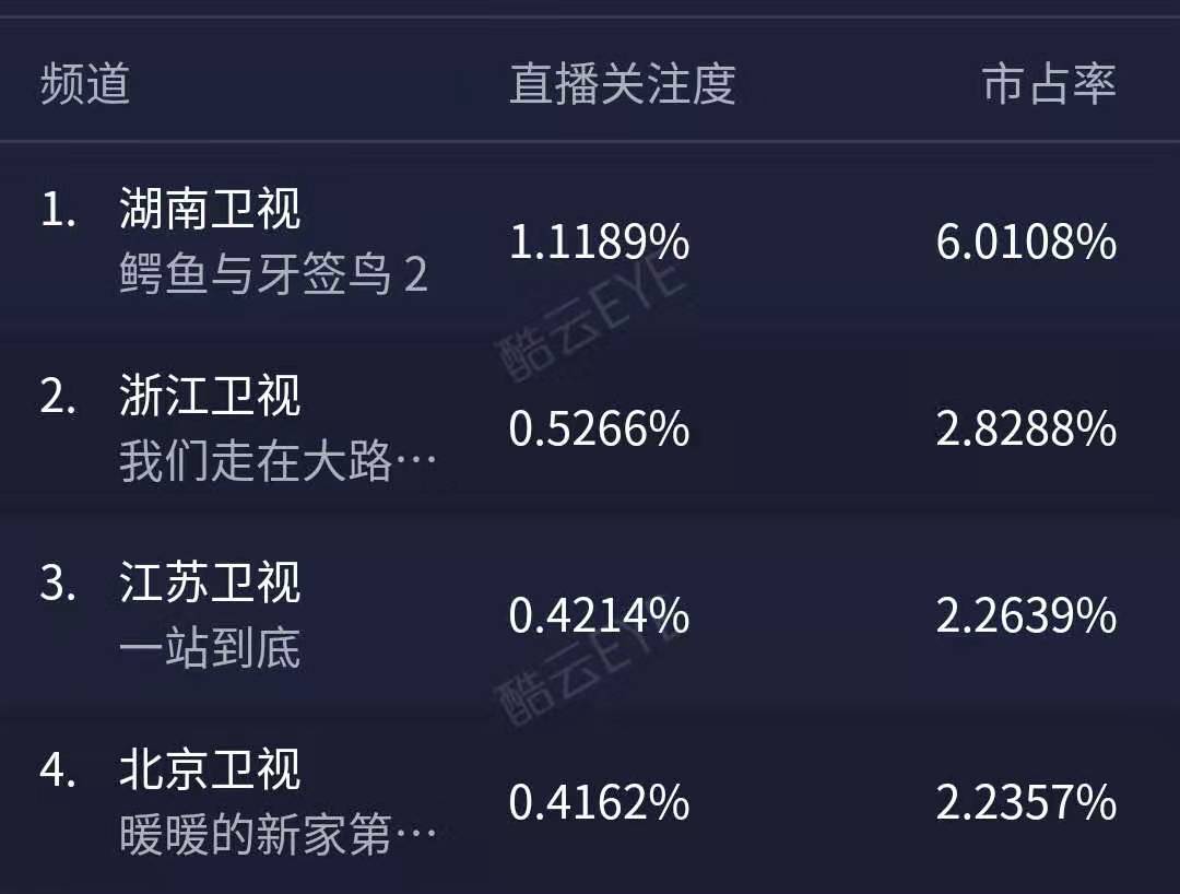 各大卫视平台方面,目前只有湖南卫视正在播出爱情偶像剧,所以,这部《鳄鱼与牙签鸟》获得了非常不错的实时收视成绩。根据酷云实时的数据来看,这部电视剧的播出时间段内,实时收视成绩一直维持在1%以上,保持了同时段所有卫视平台收视率第一的好成绩。从目前这部电视剧的卖相来看,成为未来一段时间卫视热播剧的可能性极大。