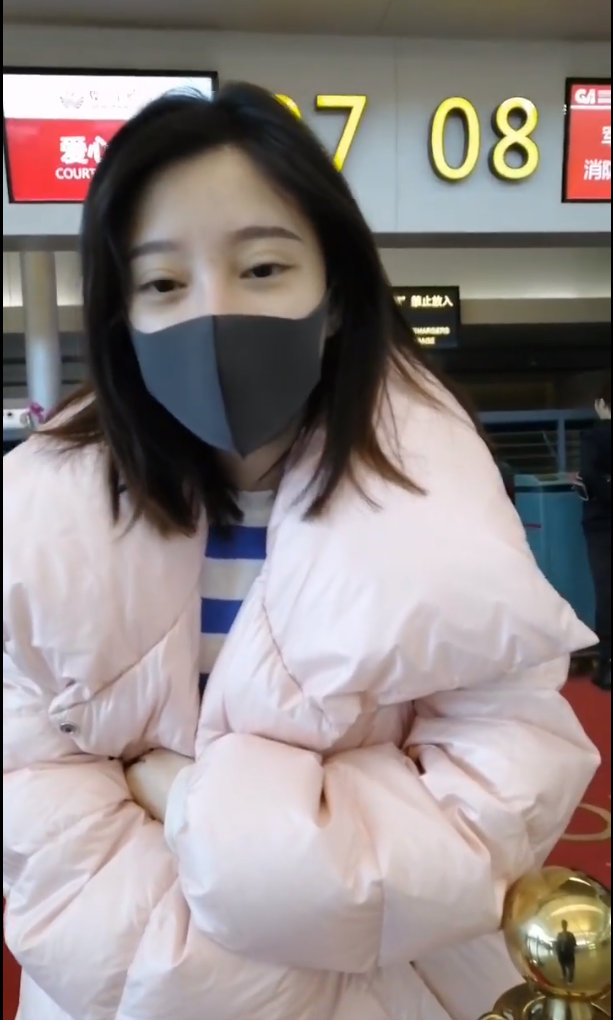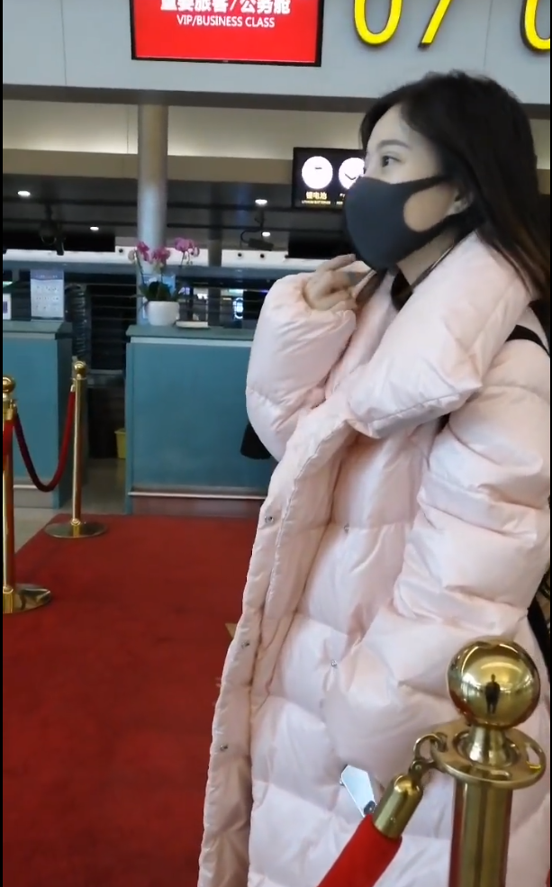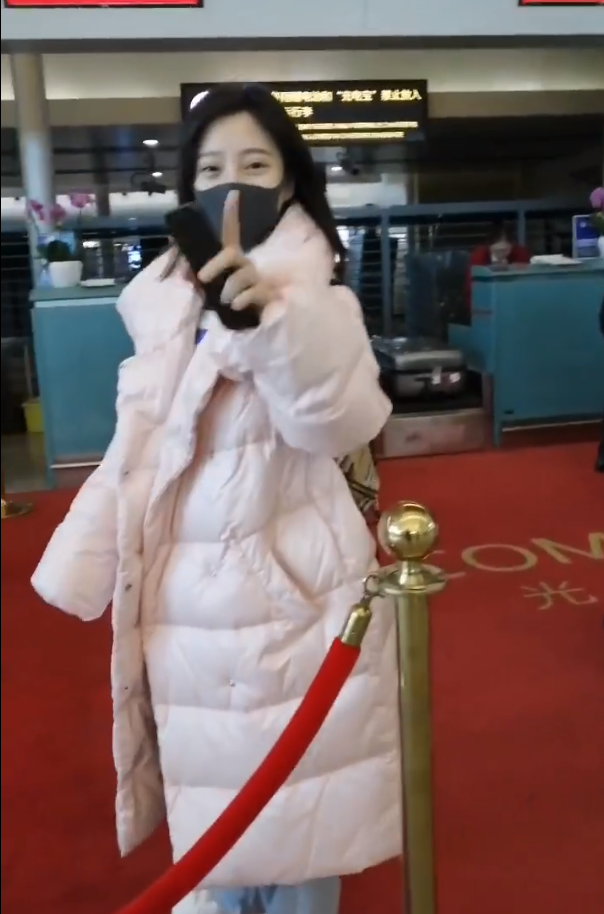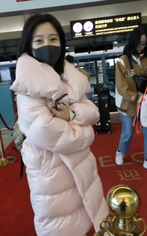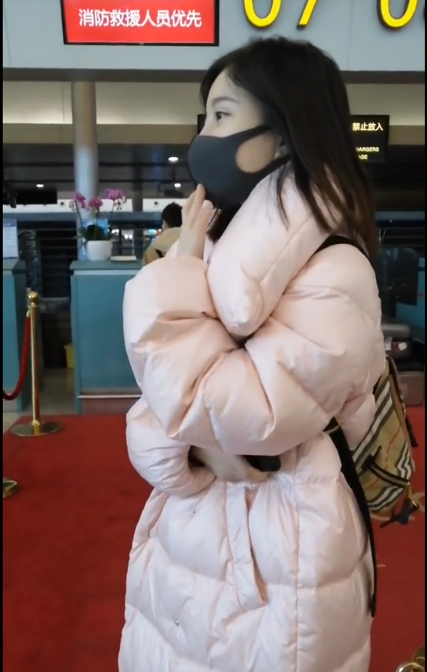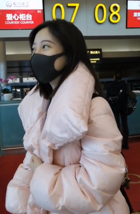 原标题:冯提莫穿淡粉色的长款羽绒服,直接素颜走机场,颇为小清