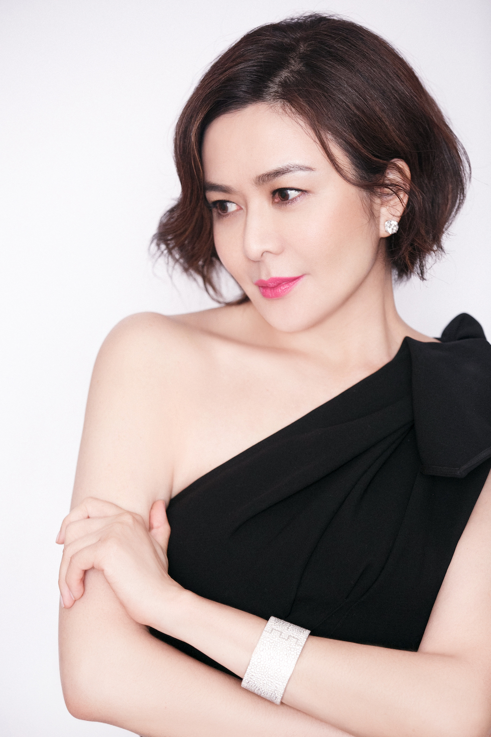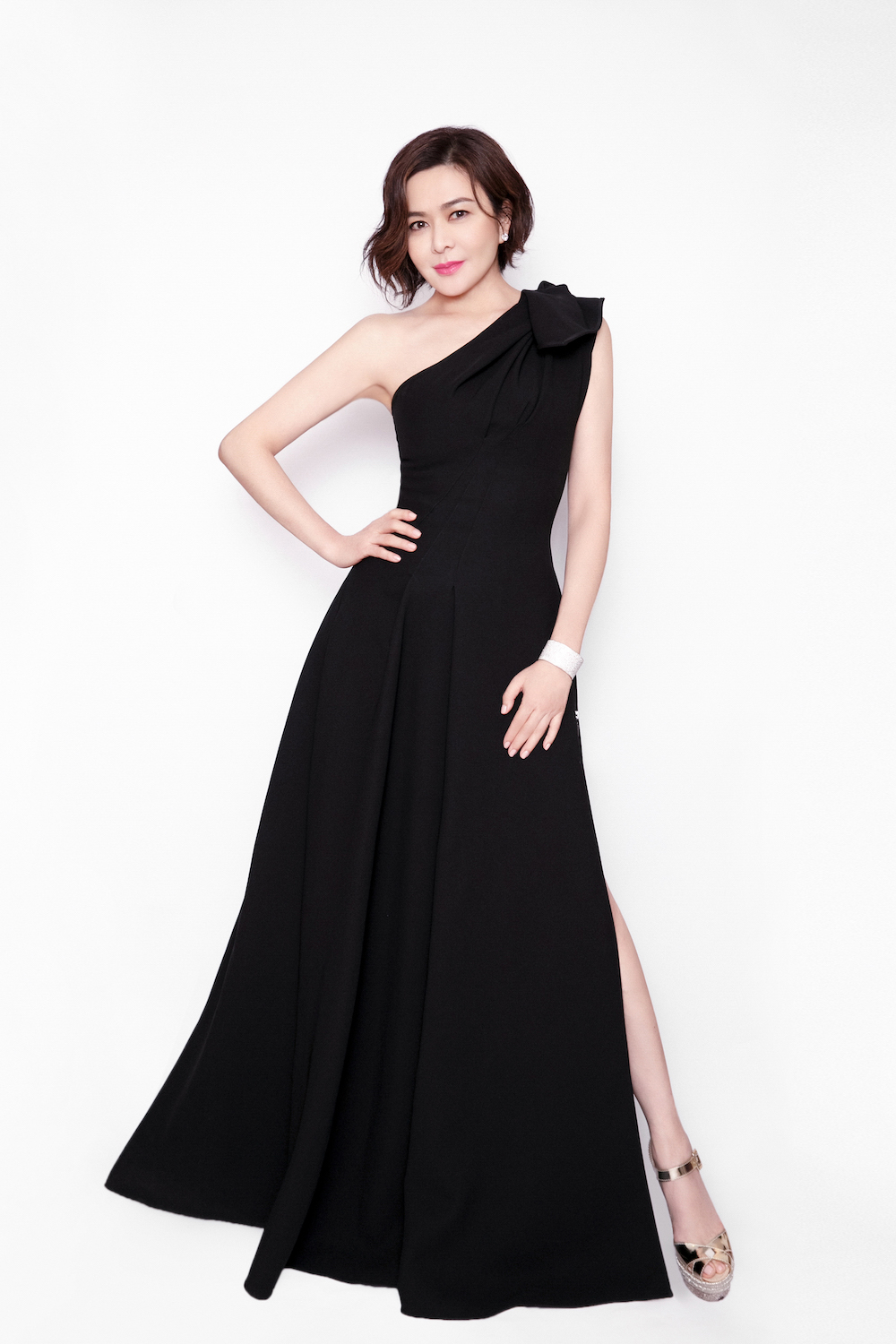 原标题:关之琳露肩纯黑长裙,诠释极简