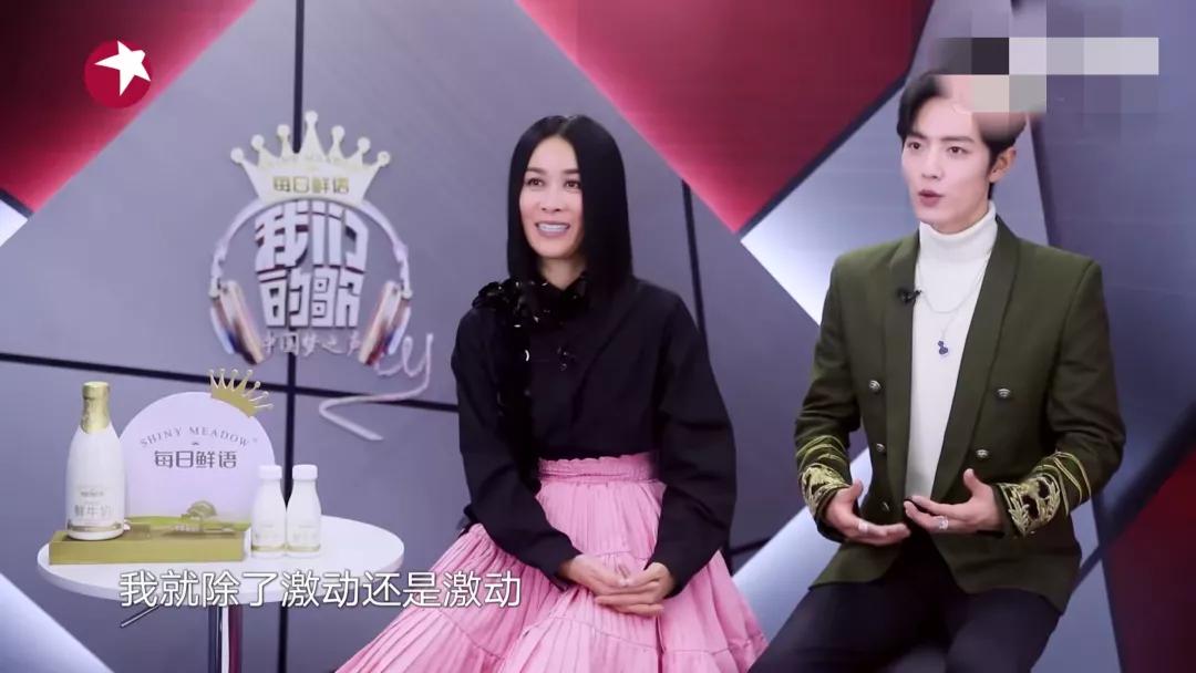 那英嗓音沙哑低沉,肖战却是温柔清亮,按照《我们的歌》的赛制,表演前是不知道合作者是谁的,所以等待中的肖战还有些紧张拘谨。
