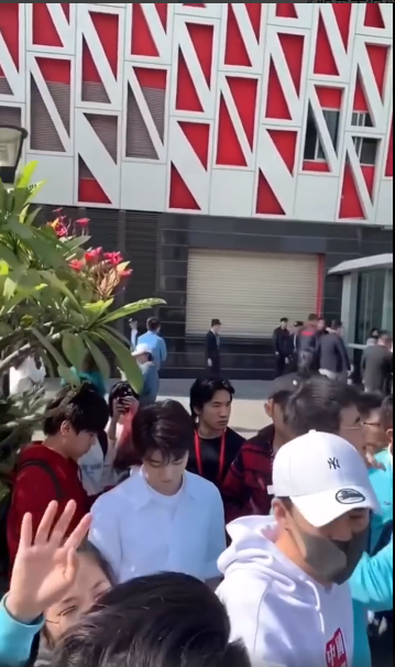 走到上车点的时候,王俊凯和工作人员一起在原地等待了一会儿,确认来接王俊凯的车已经到达后,王俊凯在工作人员的保护下向车移动。