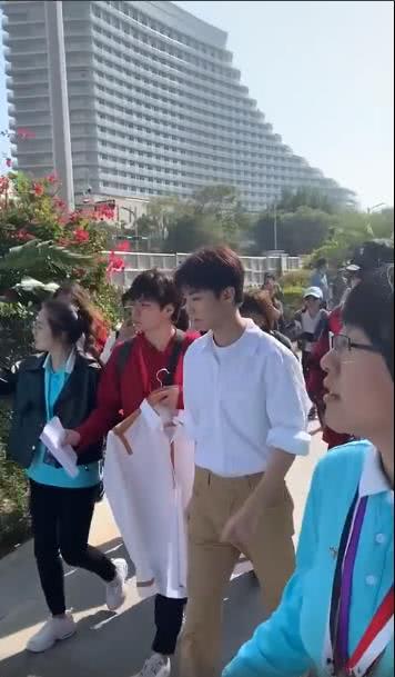 王俊凯身旁除了有许多工作人员陪同,还有不少围观群众一直跟随在身边,为了维护现场秩序,随行的工作人员一直贴身保护着王俊凯,并一直出声提醒围观群众不要拍照了。