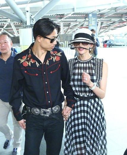 林志玲和老公婚宴结束后,第二天就抵达车站。林志玲穿着一身黑白格纹的修身长裙,手里捧着一大束粉红色玫瑰花,脸上洋溢着幸福的味道,而老公黑泽良平则穿着一身黑色带花样的衬衫,其高大的个子加上五官棱角分明给人一种帅气阳刚的感觉,两人甜蜜牵手很幸福。看来昨晚的派对狂欢并未让两人显现疲态。