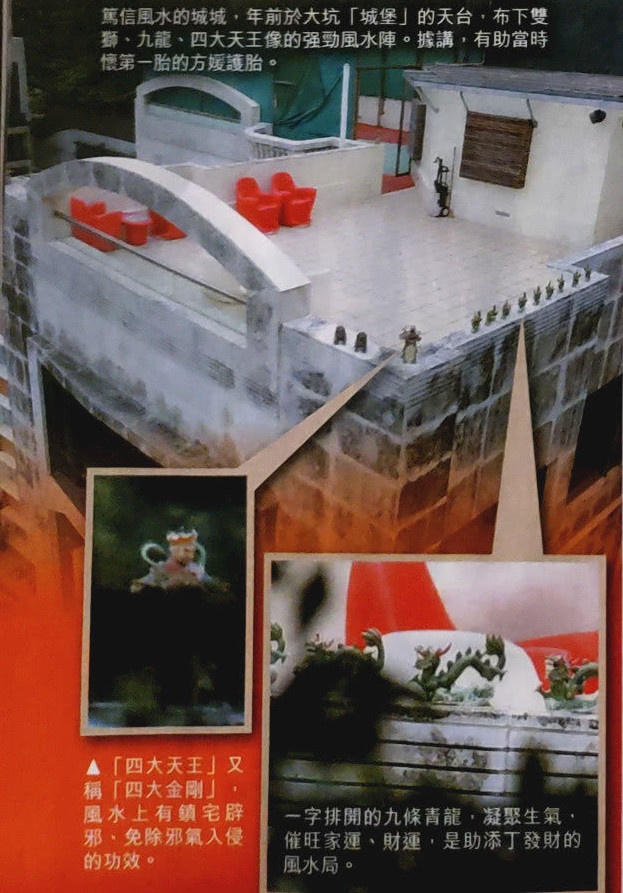 不过很多香港艺人都笃信风水之说,方媛生第一胎的时候,就有媒体拍到郭富城在自家房顶摆风水阵,“四大金刚”辟邪镇宅,“九龙阵”则是助旺家运财运、添丁发财。看来郭天王迷信风水的说法,也并非港媒的信口开河。
