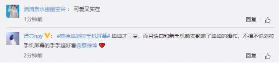 护“坤”情深的网友立刻解释道是因为拿着话筒不方便操作手机,但是不得不说划拉手机的屏幕的手超级好看,确认是真爱分无疑了。更有网友表示,三岁的坤坤做出这种反差萌的动作实在让人忍不住想高呼“太可爱了”!