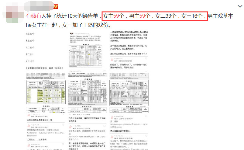 女三加戏一事遭到“扒皮”后,很多网友都对此纷纷谴责,认为这样的做法不仅仅是加戏,而是“抢戏”了。不过,周洁琼粉丝也对此提出了质疑,他们整理了最近10天的通告单,男女主的戏份都是59条,女二33条,而女三只有16条。