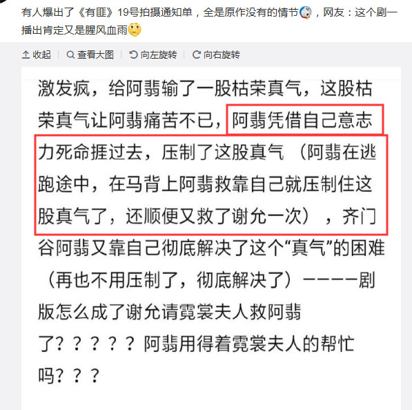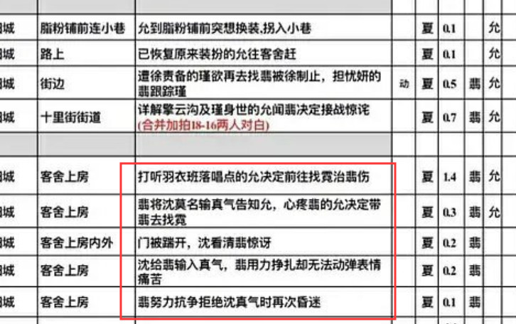 然而,通告单上显示的剧情却改成了男主谢允救周翡,带着奄奄一息极度虚弱的女主,去找霓裳夫人治伤。原本在剧情中担任主导的周翡,在这段剧情中沦为“工具人”。