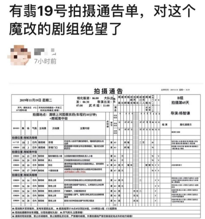 在一部剧正式播出之前,网友对于演员加戏的消息只能得知于道听途说,可《有翡》剧组却每天给自己提供加戏“实锤”。网络上盛传《有翡》剧组19号的拍摄通告单,剧情梗概和角色分配都写得明明白白,网友们就是因此发现剧情惨遭魔改。