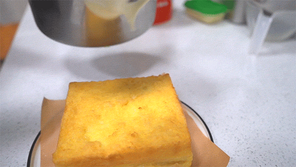 一刀切开,滚烫的馅料从面包片间汩汩流出,上一秒还是切开面包皮时“卡兹卡兹”的声响,下一秒这外表的坚强便瞬间瓦解。高密度的面包片扎实可爱,流心滑过,两侧白色的面包瞬间上色,宛若山水画中浸润了天地灵气的“山河”。小麦以为面包便是最香的蜕变,不曾想油炸后与流心的缠绵才是自己的高光时刻。