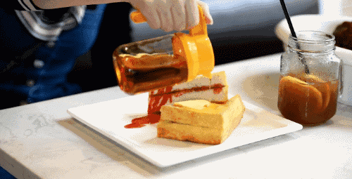西多士的全称是“法兰西多士”,法国人叫pain perdu,吃剩的面包裹上牛奶和蛋液油炸竟也成就了一道美食。不禁让人想起潮汕人煮粥喜欢用熟饭加水熬的做法,倒进鱼虾等鲜物,米汤香甜,米粒也有嚼头,估计也算是剩饭的出奇制胜。