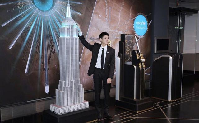 在联合国演讲环节之后,王源又出席了帝国大厦的点灯仪式,只见王源将西装上衣的纽扣解开,侧面面对镜头右手按在帝国大厦的模型上,有型有范,小源太优秀了!